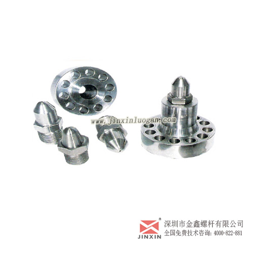 螺桿頭(過膠頭、分膠頭、火箭頭)有螺桿頭、止逆環(huán)、介子三件套組成,安裝在螺桿前端,用于在融膠時(shí)產(chǎn)生背壓,射膠時(shí)產(chǎn)生止逆效果把塑化好的融料注射入模具里面。金洋螺桿頭材質(zhì)有全合金(全硬化粉末合金鋼)、SDK61、SACM645、經(jīng)過調(diào)質(zhì)、淬火、氮化、全硬化等處理工藝,金洋螺桿頭的優(yōu)點(diǎn)是精密耐用,封膠效果好。適用于進(jìn)口全電動(dòng)精密成型機(jī)注塑精密齒輪、連接器、導(dǎo)光板鏡片等精密電子產(chǎn)品